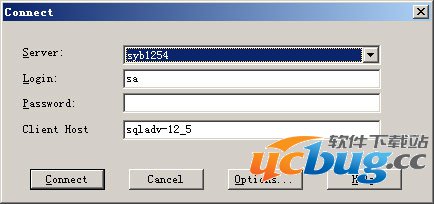 5、其中Server列表中的Sybase服务名就是在第二步中配置的。Client host表示连接到Sybase如果想配置网络包大小、大文本字段的长度、客户端字符集等属性,可以点Options...按钮