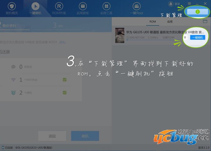 如果您还没有下载ROM包,则点击"前往下载",在ROM市场中选择喜欢的ROM,点击“一键刷机”按钮,即可开始下载ROM包。