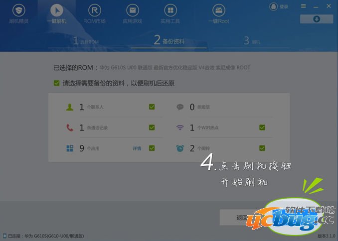 刷机会清空手机的数据,所以刷机之前请选择所需要备份的数据,如通讯录、手机短信、通话记录、应用游戏等。