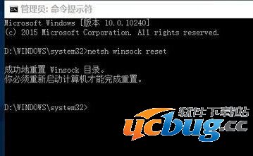 然后按住键盘组合键win+x,选择命令提示符(管理员),在提示框输入netsh winsock reset,回车