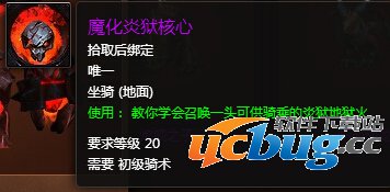 魔化炎狱核心是新副本暗夜要塞的掉落坐骑。史诗难度下掉落概率基本为必掉。