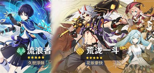 上半卡池up角色散兵、雷神;下半卡池复刻up角色珐露珊、优菈、荒泷一斗;