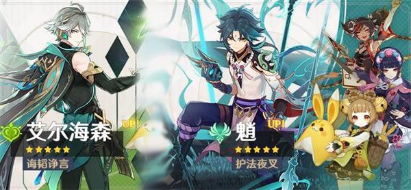 上半卡池up角色艾尔海森、魈、瑶瑶;下半卡池复刻up角色胡桃、夜兰;