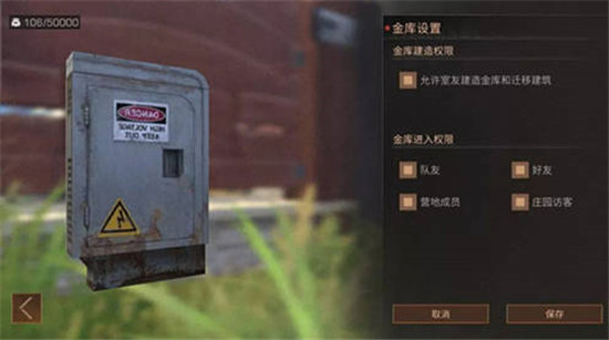 同居关系,也拥有使用室友金库权限,可放置物资,庄园主可在金库管理界面里自行设置是否允许他人进入金库,以及授予室友改造金库建筑的权限。