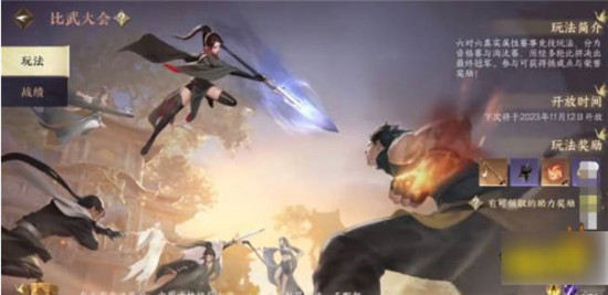 报名时间在每个月的第二周13:00-13:55分点之间。需要6人组队才能报名,没有固定队的也可以在便捷组队界面自动匹配或手动寻找队伍,11月份的比武大会在11月12号开启。