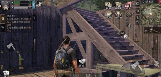 在新的地基里我们首先要选择在101开发区里寻找楼梯物品,楼梯物品在前期防御中是十分重要的结构,利用楼梯的高度可以有效的攻击僵尸,并且做到抵抗僵尸近身攻击人物的效果,而楼梯结构又可以让人物处在一个较高的位置,楼梯在初级家园里可以通过拾取的方式获得,楼梯的摆放位置是比较有讲究的,如果放在外面那么僵尸就可以轻易的爬上楼梯,所以楼梯一定要放在有围墙的里面,这样人物处在高出就可以利用高空优势使用弓箭击杀僵尸。
