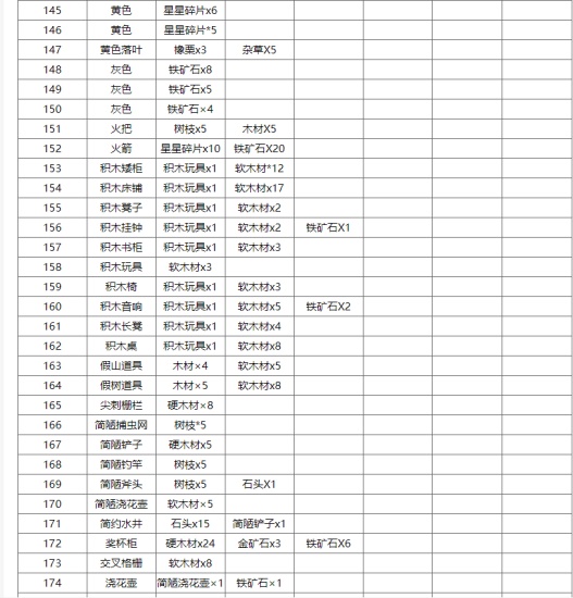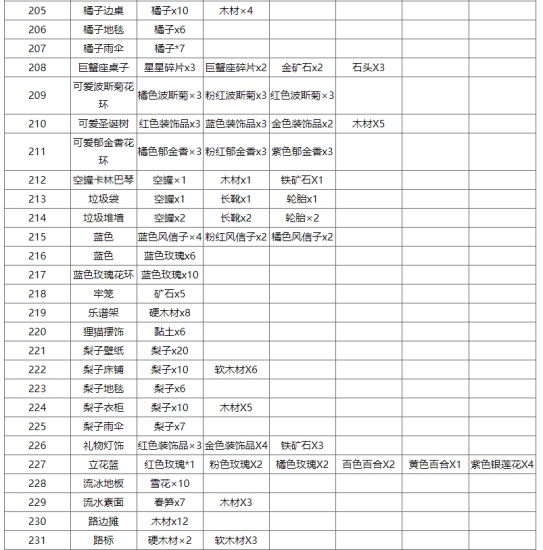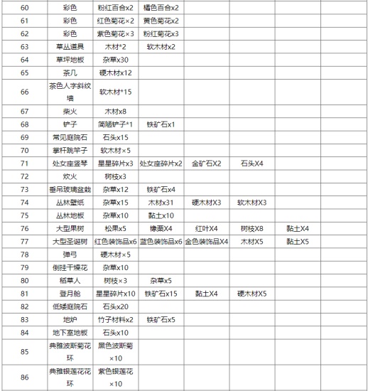 需要注意的是,有些物品的素材是当季限定的,比如春笋,如果过了春笋出现的限定时间,自己也没有收集够数量,就无法造出春笋类的家具了。